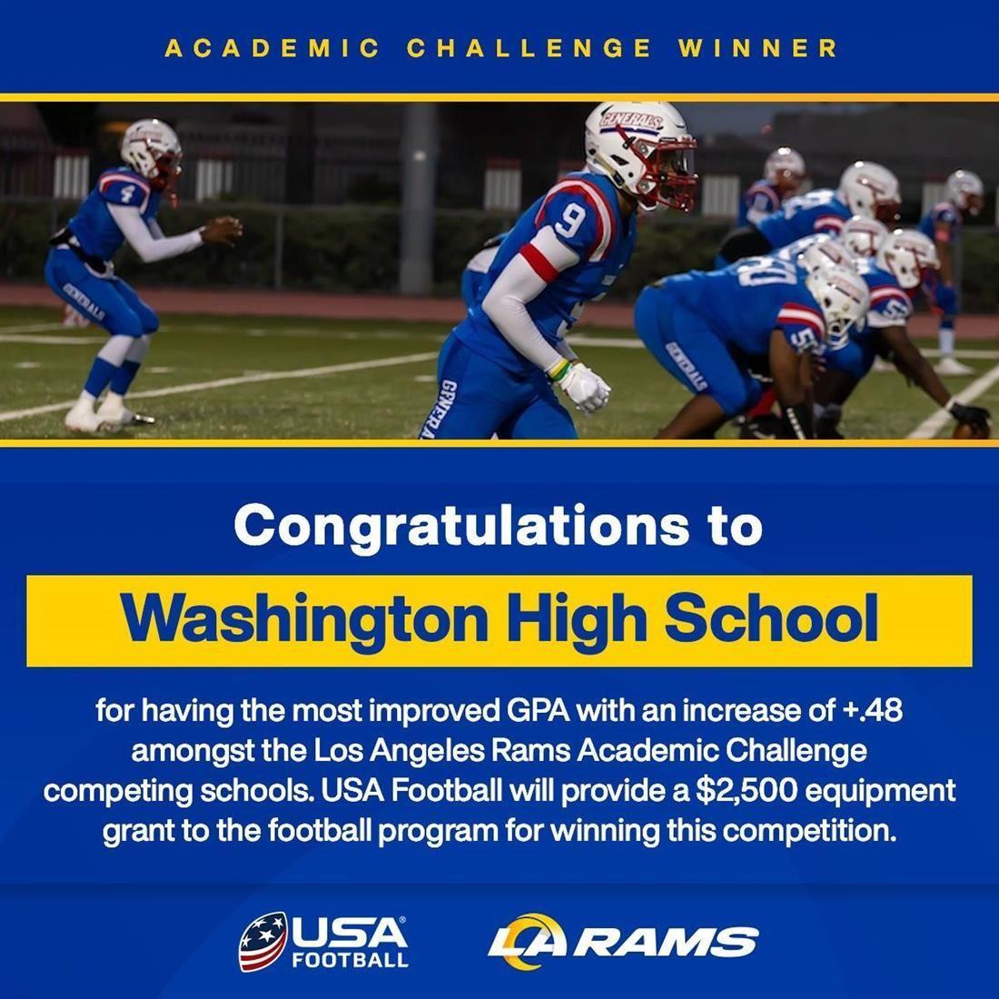 Champions recognize champions! The Los Angeles Rams presented Washington Pre High School and Hamilton High Schools football programs with $2,500 academic grants. These schools were selected for having most improved GPA and having the highest in-season GPA of 3.10. #WeAreGlowing with pride. #SuccessOnAndOffTheField #AcademicTouchdown Click here for more images.