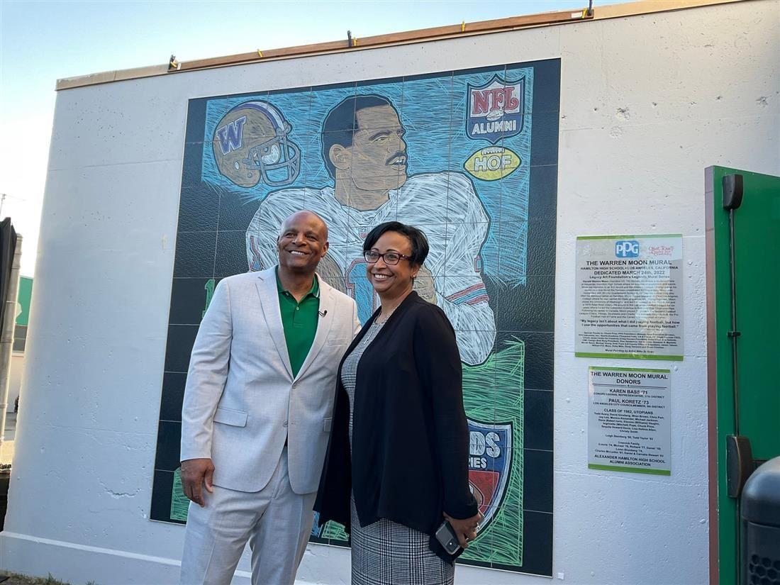 Warren Moon, a Hamilton High School alum, unveiled his mural. Thank you, Board Member Dr. George McKenna and LD West Superintendent Dr. Adaina Brown for taking the time out of their very busy schedules to celebrate with our Hami family!